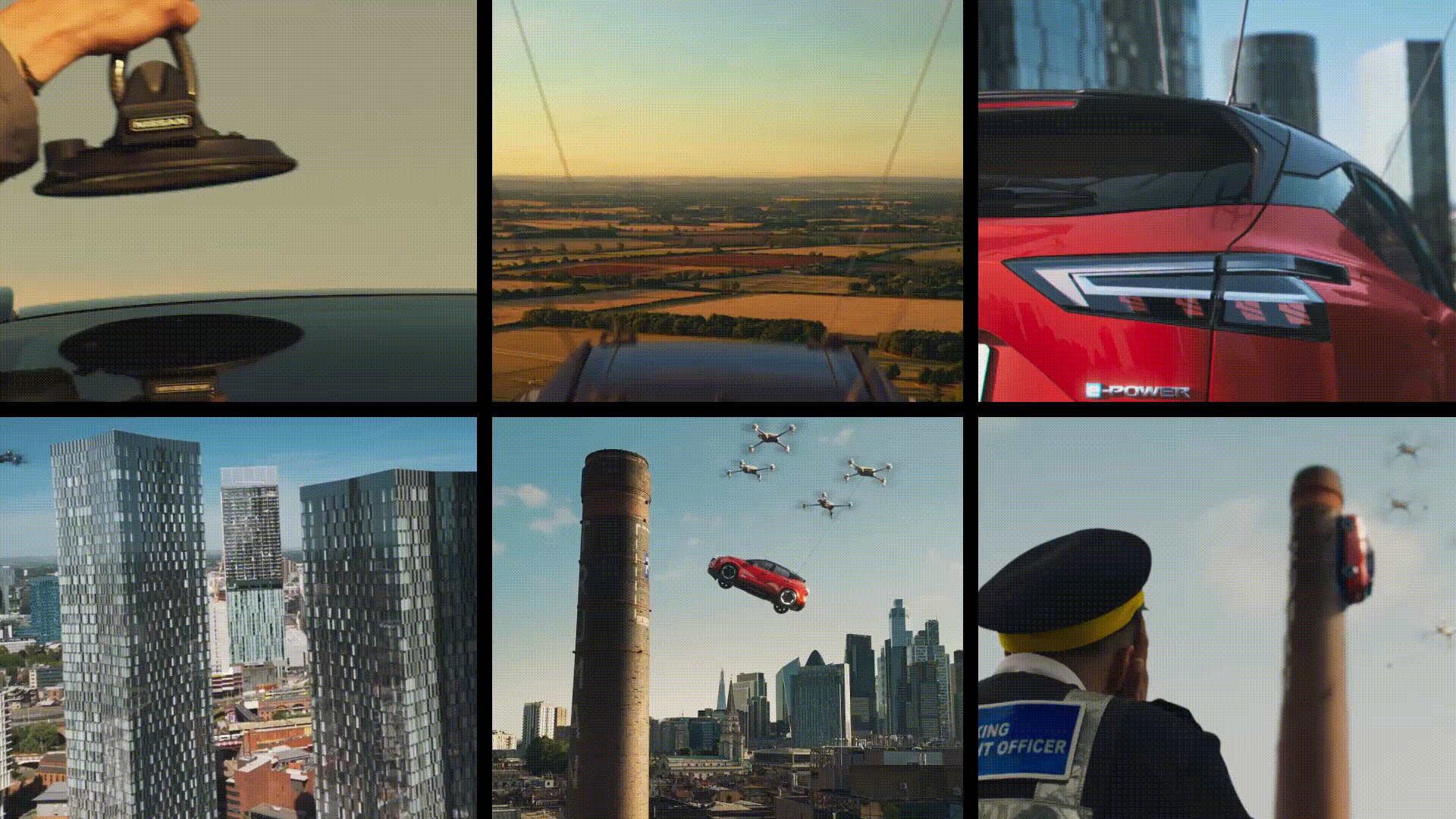 To tease, we played into fakery with a visually striking social media films, where four drones carried the car through the skies from the Nissan factory in Sunderland, over Manchester, and finally into London.